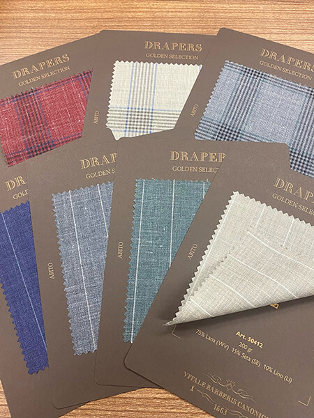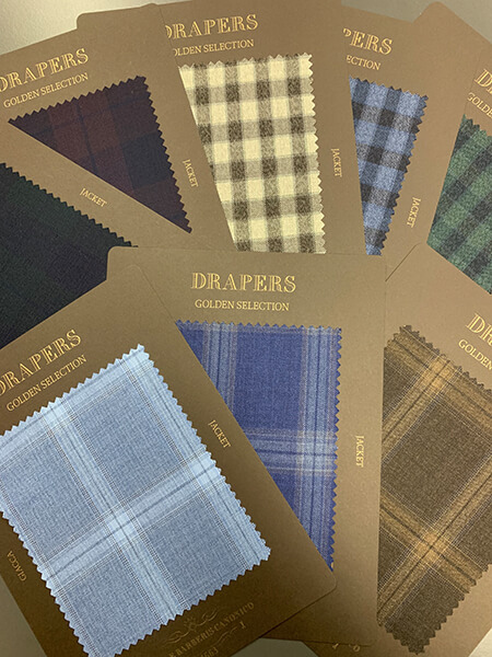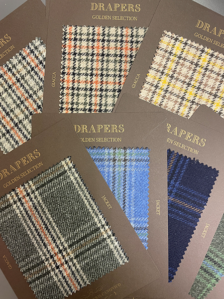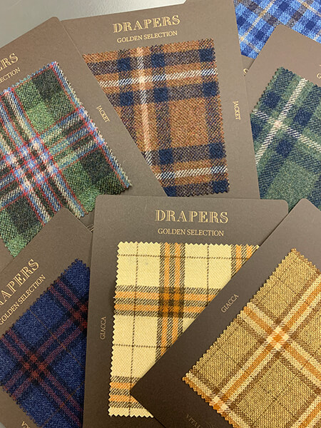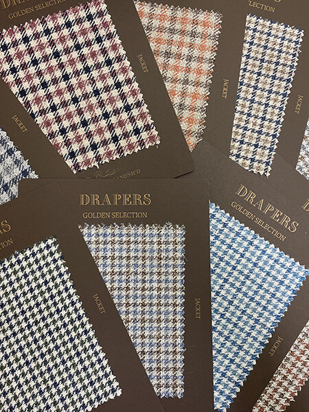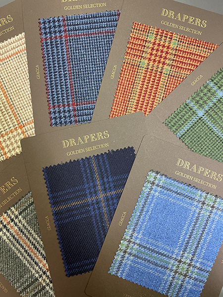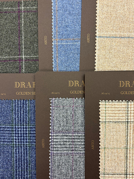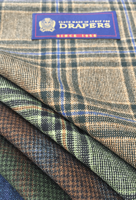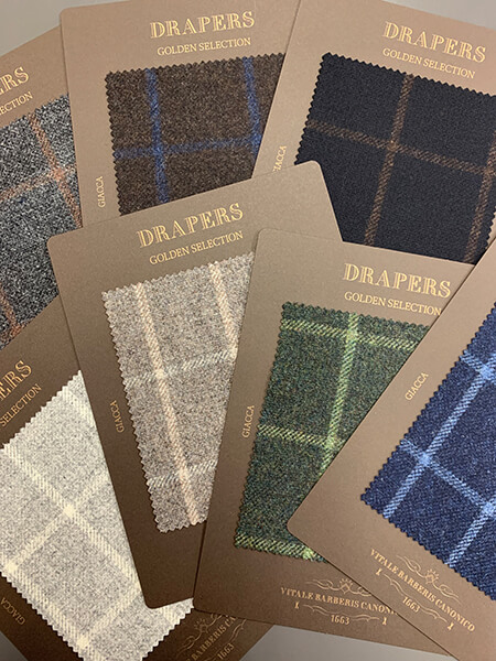 ドラッパーズの提案する英国製生地のコレクションです。イタリア人から見た英国を代表する定番であり伝統的な生地を取り揃えました。ソラーロ、コットン、ツイードなどレギュラーバンチにはない風合いが魅力です。