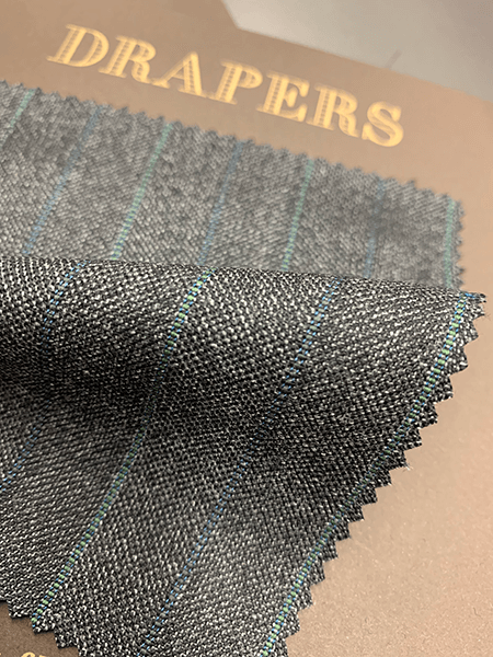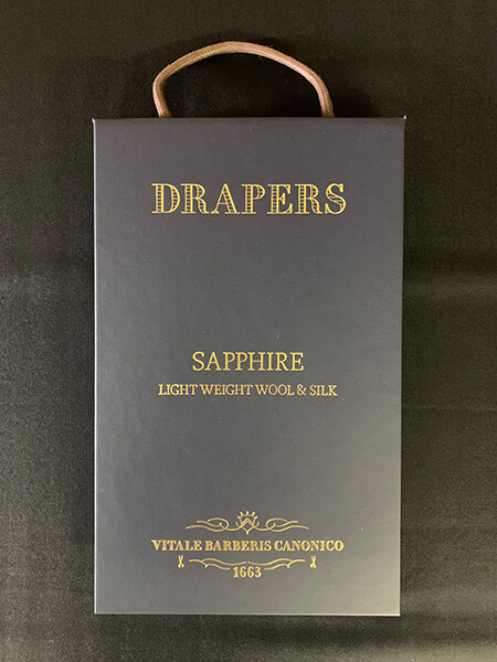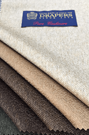 “GREENHILLS”では最も有名なメリノ種のうち、サクソンメリノが使用されています。最も一般的な種は1頭につき年間8㎏程の羊毛を刈り取ることができますがこのサクソンメリノは1頭につき最大でも6㎏しか刈り取る事が出来ません。その証拠にこのコレクションで惜しみなく使われる羊毛は色、光沢、構造、長さ、細さのどの項目においても一級品と言えます。DRAPERS社、イチオシのコレクションです。