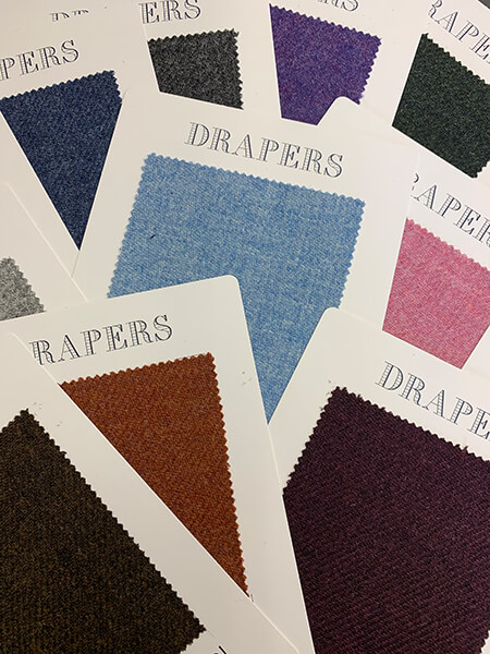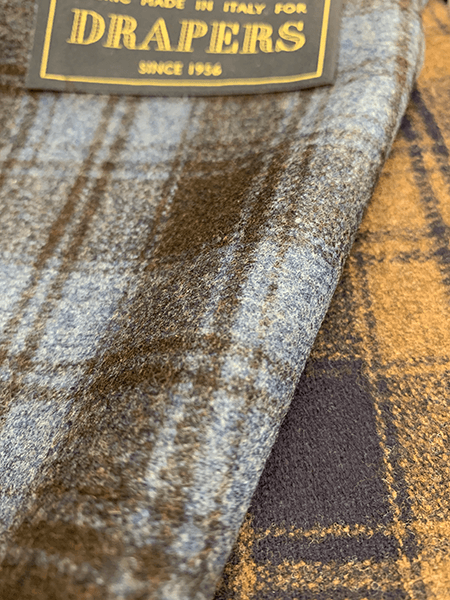 冬だからと言って地味で暗い雰囲気にならないのがDrapersのジャケットバンチです。最初の11品番のウール・カシミヤは色柄に加え、素晴らしい肌触りのラインナップとなっております。これを可能にしているのは高い品質のウールです。その他ウール100%の品番は昔、スコットランドのバイヤーがカシミヤ100%で作らせていた色柄をよりお求めやすい形にしたものとなっております。