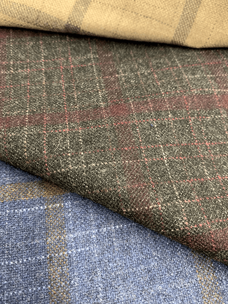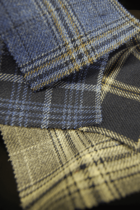2022SSシーズンのGOLDEN SELECTIONはウール100%の軽い素材など多く取り揃えました。プリントで大柄なチェックを表現したもの、織柄で生地の表面に変化を付けたものなど新しい提案も増えています。春夏シーズン定番のリネンやコットンの三者混も様々なバリエーションでラインナップされています。