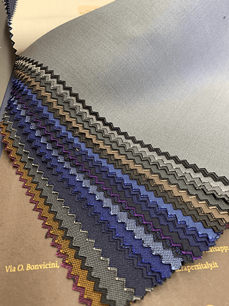 ウール・シルクのスーツ生地コレクションです。サファイアのように、光の当たり方によって絶妙に変化する色合いが特徴です。ソラーロカラーのバリエーションも多く取り揃えております。
