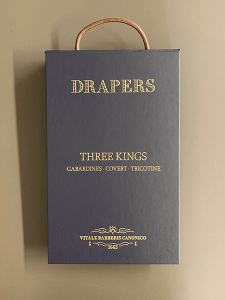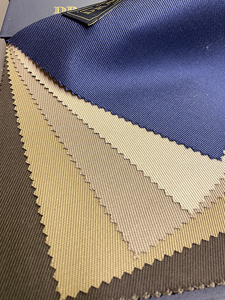 オールシーズンご利用いただける新しいコレクション‟THREE KINGS”が登場いたしました。“BLAZON”と同じSuper150'Sの原毛を使って織られたギャバジン、ライトウエイトのカバートクロス、そしてウール・コットンのトリコチンの3種類で構成されています。程良いハリ感と多彩なプレーンカラーは、セットアップや、トラウザースのご提案に重宝するコレクションとなっています。