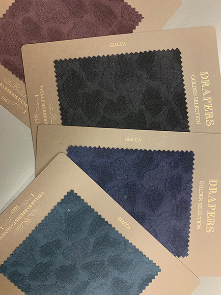 フォーマル用に最適な生地を取りそろえたコレクションです。迷彩柄や植物をモチーフにしたジャガード生地はディナージャケットに最適です。またシルク100%のシャンタンも今回新たに加わりました。フォーマルな場面でお使いいただける定番生地も、引き続き取り揃えております。