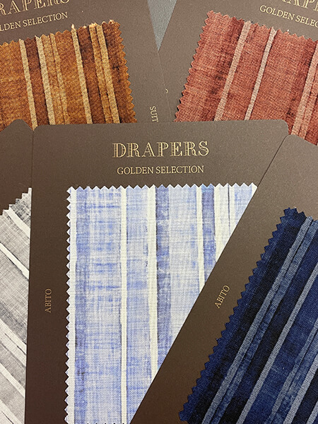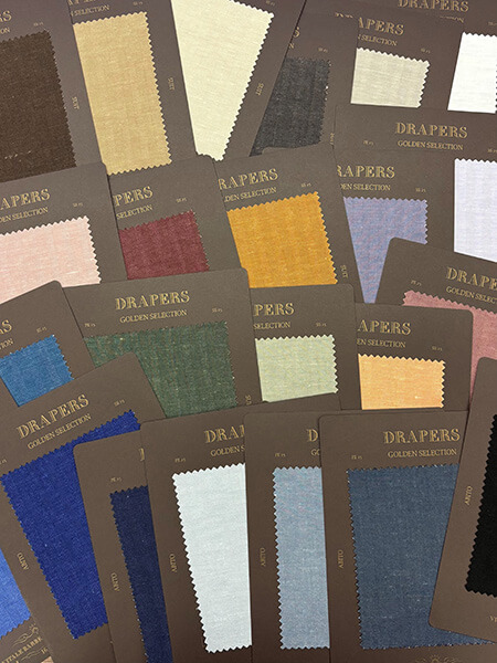今シーズンは2種類の新素材を加わり、全104色のDRAPERSらしいエレガントでフレッシュな素材をご堪能下さい。