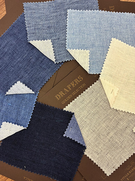 PORTOFINOという小さな港町からインスピレーションを得て、このリネン生地だけのバンチを作成しました。リネン100%のシアサッカーはよりスポーティーな着こなしに、次に目付260gの軽さと豊富なカラーバリエーションの平織り、ブレザー用としてデニム風3プライ、そしてテーラードの世界では欠かすことのできない本物のクラシコであるアイリッシュリネンがラインナップされています。