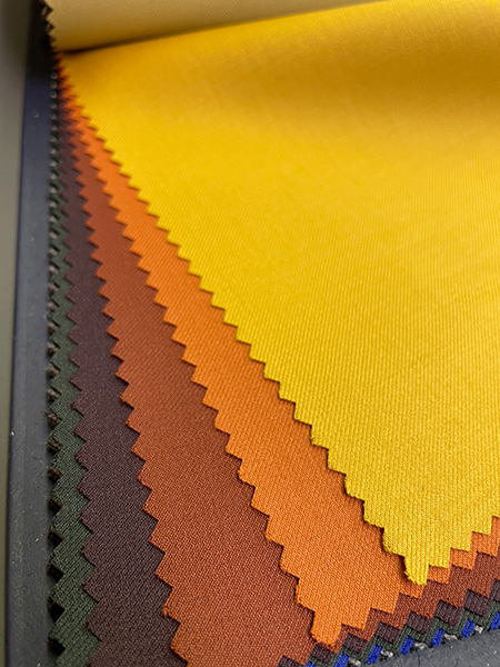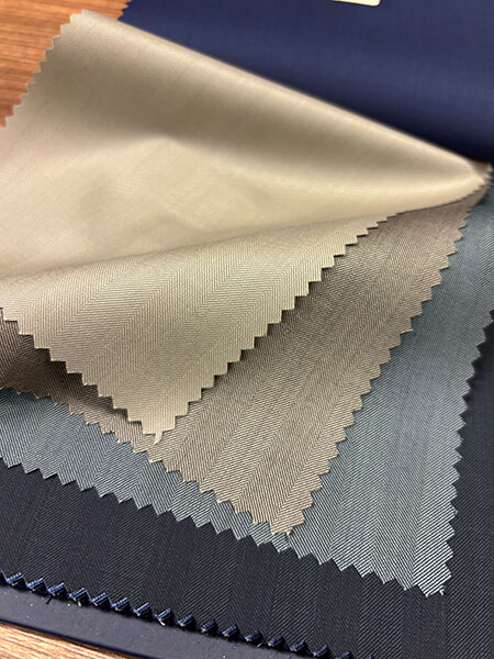 コートなどアウターにお使いいただける裏面にポリウレタンフィルムを貼ったコレクションです。3種類の表地はそれぞれに合ったメンブレン加工が施され、防水、撥水、防風、透湿性を持っています。また製造工程や材料の環境への影響にも配慮した優れたコレクションです。