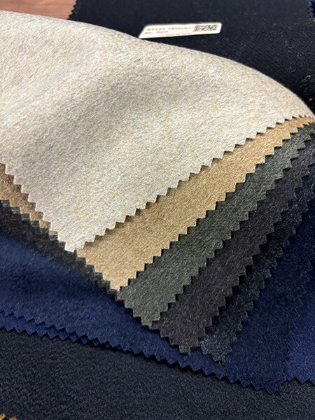 様々なウェイトと品質をご用意し、カシミアの純度、貴重性をコレクションに表現しております。高品質で光沢のあるツイール、クラシカルカラーやヘリンボーンデザインまた、ジャケット用として春先に着ていただけるトロピカル250gの軽快なコレクショ等多数取り揃えております。さらにビーバー仕上げのクラシカルカラーのコレクションも加わり、バラエティに富んだカシミア生地を楽しんでいただけるコレクションに仕上がりました。着る人の心と感情を満たす最高級の肌触りをご堪能下さい。