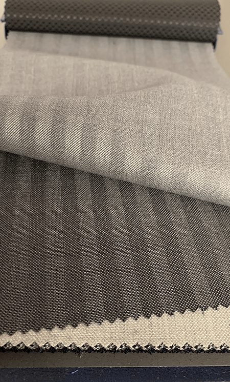21マイクロン糸を使って織られた素材は、ウール本来の特性である復元性と糸の構造のダブル効果により、シワになり難く通気性にも大変すぐれております。